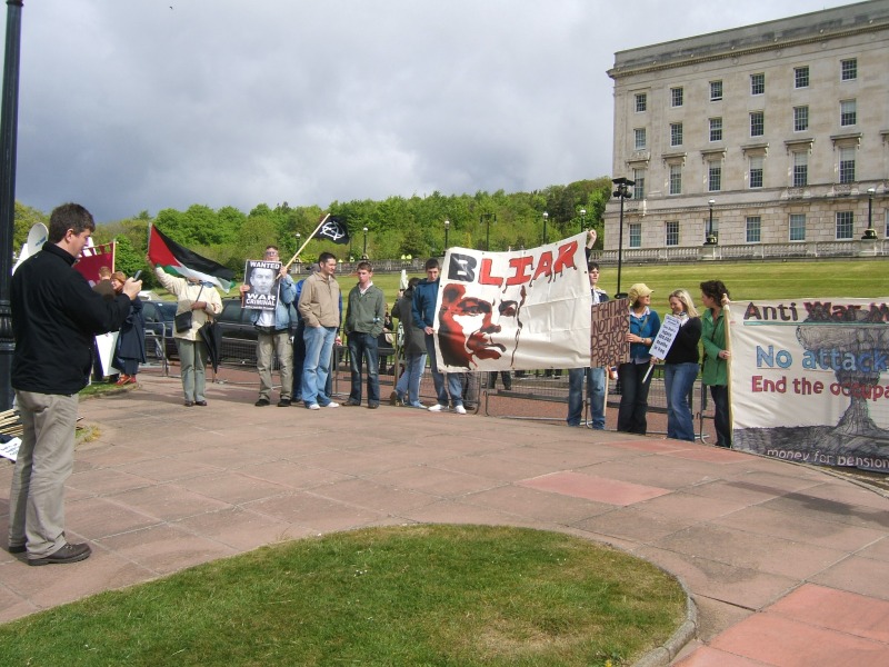 The Belfast Anti-War Movement had planned to mobilise in the city centre and travel to the gates of Parliament Buildings with banners and placards expressing opposition to events in the Middle East.