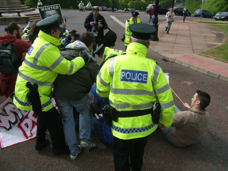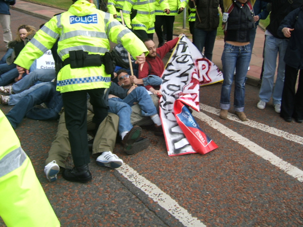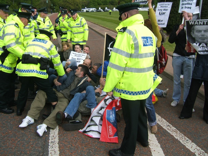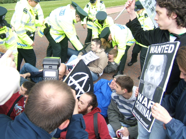 Jump To Comment: 1 2 3 4 5 6 7 8 9 10 11 12 13 14 15The cops moved straight in when a peaceful act of civil disobedience was organised to protest Blair's arrival. Three people were arrested at this point.