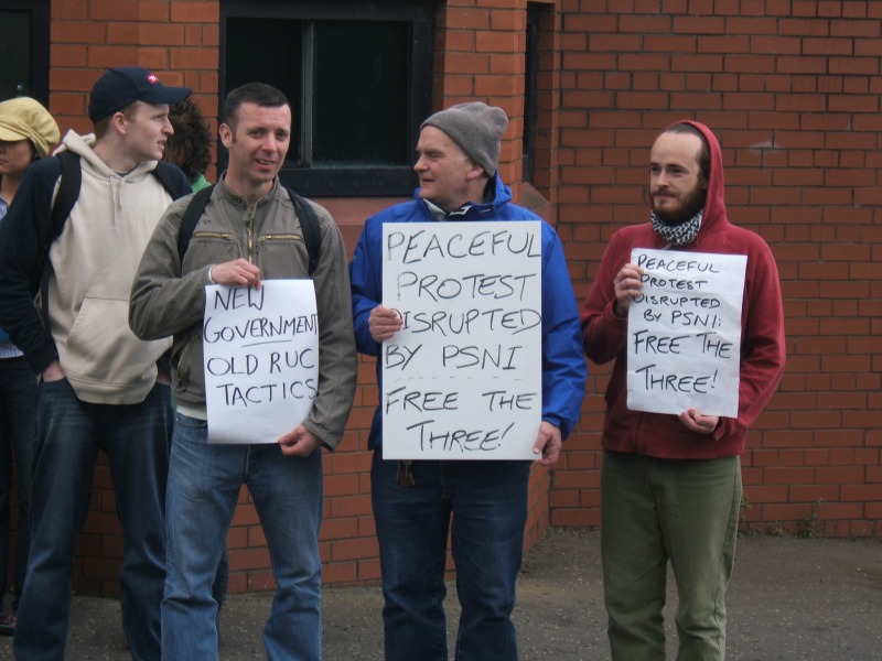 Despite misinformation from the police that the three anti-war protestors arrested had been taken to Musgrave Street station, the others found out that they had actually been taken to Strandtown barracks and organised an impromptu demonstration outside of it.