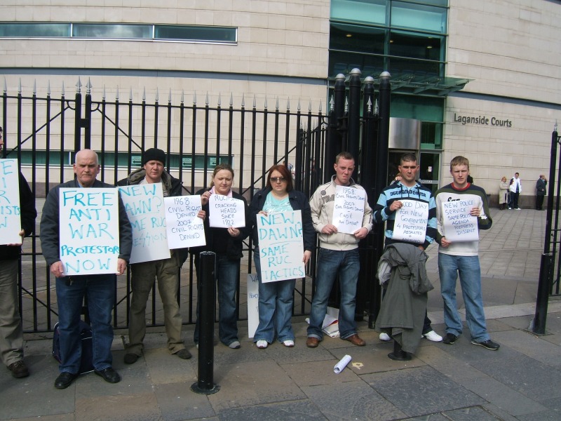 There were members of BAWM and AWI present today alongisde anarchists, Trots, and republicans too. There were also several members of Éirígí who had come up to support their comrades. The picket lasted well over an hour but friends and comrades of the two accused stayed until the hearing was completed and they were eventually released on bail.