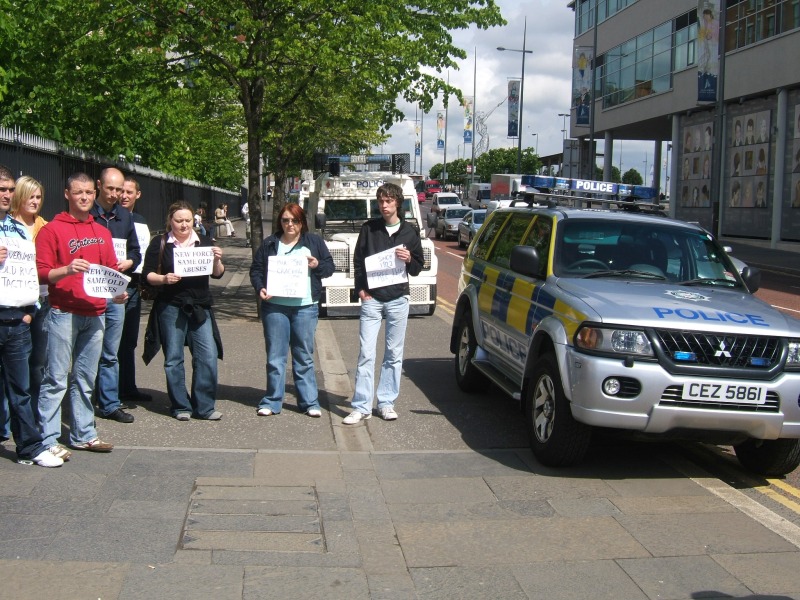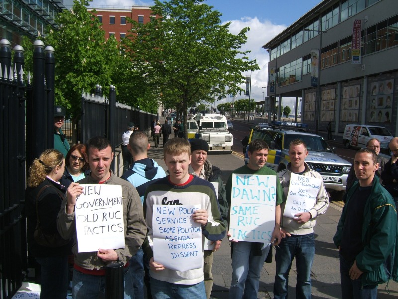an ISN comrade on the picket. Well done to all. Judging by the PSNI behaviour the leopard hasn't changed its spots.