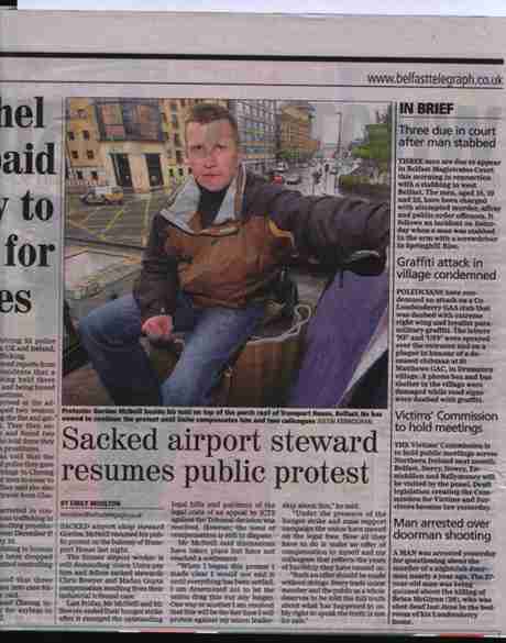 The three sacked airport shop stewards who called off a week long hunger and thirst strike on 11 April, after they received assurances from their union, Unite, that commitments made to them last September would be met, have resumed protest action at Transport House. Related Links: Previous Indy coverage | Socialist Party | Unite |