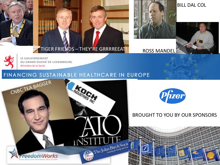 ![]() American Rightwingers, Astroturfers, Pharmaceutical Companies, Irish Developers, Influence Peddlers and More... There are about 6 stories to Pat Cox: the Public Pat, Pat the Builder (aka the Eastern Adventurer), Dr. Cox - Medicine Man, Our Friend in Washington, the Cox Crusader, and lastly, Forty-Hat Pat. Let's meet them all. Fantastic Mr. Cox and Friends: “Our message to [the West] is that the Regions Party program is based on real experience of real business people,” ... By cosmic synchronicity, Pat once again got the chance to network with Paddy Ashdown in July 2007: he joined the EU-Russia Centre [12], with all their good stuff about encouraging social stability and international security in the shared relationships and hinterlands of Europe and Russia, using the best human-rights vocabulary. [13] Then, about five months later in December of 2007 [14][15], Pat's ship came in, when he was invited to join the board at the memorably-named Tiger Developments (originally formed as joint venture between O'Flynn Construction & Goodbody Stockbrokers in 1999). At about the same time that Irish roundabouts and country petrol stations had advertisements inviting the public to get in on the ground level with property expos for Romania, Bulgaria, and Spain, this Irish construction firm was doing their bit. As it happened, they had just opened an office in Riga, Latvia, and were seeking to expand into the former Soviet sphere of Eastern Europe and the Baltic States (after having conquered the UK and Germany.) Pat the Builder with his networking skills and knowledge base of the Wild East, was thus able to practice what he preached about expanding opportunity and stability on the eastern frontier of the EU, by making a - literally - concrete investment in solidarity. Although, if Pat does not record this on his current resumé, it is possible he is just too humble to boast. We might be forgiven for hoping, also, that the O'Flynn Construction buyout of Tiger shares from their previous Goodbody Stockbroker partners in 2006 - just as we were coming to the height of the Irish property bubble - did no harm at all to either Goodbody's or their private clients involved, whoever they were. Our Friends in Washington: Upon Pat's assumption into the European Parliament Presidency, in February 2002 he employed Texan Ross Mandel as an advisor. Mandel was also former Internet and communications advisor to Nouveau Republican billionaire and corporate libertarian Steve Forbes, in his US Presidential bids of 1996 and 2000 (yes, you recognise that name from the magazine). Mandel would later introduce Pat to his other lobbying partner, Bill Dal Col - also a Steve Forbes advisor amongst other things [16] - in their lobbying partnership called European Integration Soutions. Perhaps it was under his rhetorical influence that in December 2002, that Pat made the velvet-gloved comment that "Sometimes our friends in Washington are heavier handed than the situation might require" regarding Bush II's faux pas at pushing Turkey's accession into the EU [17] (a long-term US strategic interest.) Then, during Ireland's Presidency of the EU Commission in January 2004, the American Chamber of Commerce in the EU - described as "sort of like our embassy" by the chamber vice president - (and with members such as Microsoft and Pfizer, as well as being the "most effective lobbying force in town" by The Economist [19]), called on the Irish Commission Minister to make the single market "function more effectively" with the upcoming enlargement. [20] Certainly, Pat cannot be accused of neglecting his own part to play: in June 2004 [21], "AmCham EU" presented Cox with it's very first annual Transatlantic Business Award of the Year. Pat also received a "Polish Business Oscar" in 2003 [22] for promoting Polish business, from their finance minister (apparently, it is only one's own country that top EU leaders are not meant to promote.) At the end of March and beginning of April 2005, Pat was one of two keynote speakers at The Executive Employer Conference, in Phoenix Arizona [23] (the other was that leftie George W. Bush's Secretary of Labour), along with other "top thought leaders", sponsored by the employment and labor law of Littler Mendelson. It was a nice gig, where these bosses of the world united, at "JW Marriott Desert Ridge Resort & Spa, where the world-class facilities and spectacular setting provide unparalleled opportunities to relax and network with your peers and senior Littler attorneys". They even had a highlight called "A Night in Casablanca, Dinner and Intrigue Under the Desert Stars." Zoww-wee! Pat is obviously a safe pair of hands, and maybe even a fount of key information, as far as certain American and international elements are concerned. In July 2006 [24] he became senior counselor to APCO Worldwide international advisory council [25]. With APCO he also palled around with the founder director of the US Transportation Security Agency (formerly director of US Secret Service), along with the former national security advisor to Ronald Reagan, amongst others (such as key Bush II Neoconservative, Elliott Abrams [26]). They were later even joined in the fun by the former head of the Israeli Security Agency. [27] APCO Worldwide is a "global communication consultancy" specializing in "influencing decisionmakers and shaping public opinion by crafting compelling messages and recruiting effective allies" according to SourceWatch's references. That sounds comfortingly familiar. Although, according to SourceWatch, APCO "was founded by the law firm of Arnold & Porter, one of Washington D.C.'s largest law firms, also well known as a tobacco industry law firm." In addition, "APCO specializes in helping corporations advance their goals by manipulating legislators, and drafting and advancing model legislation and regulations. Key tools... include the creation of business coalitions and fake, corporate-funded "grassroots" groups tai